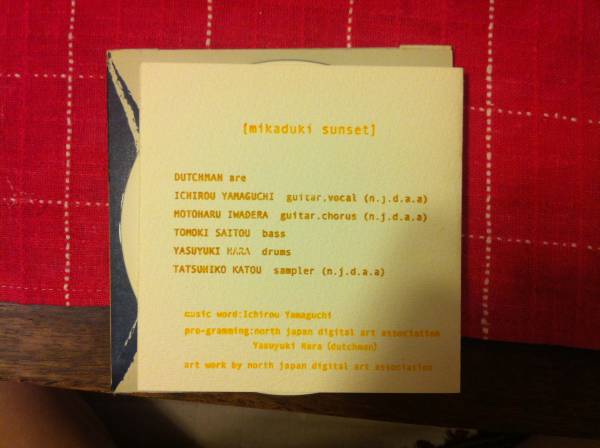 In October 2003, a sampler of Mikadzuki Sunset was pressed into CDs that were sold exclusively at their live performances. Yes, this was another song to be turned into a Sakanaction release later on. Here you can see photos of a rare copy of it.